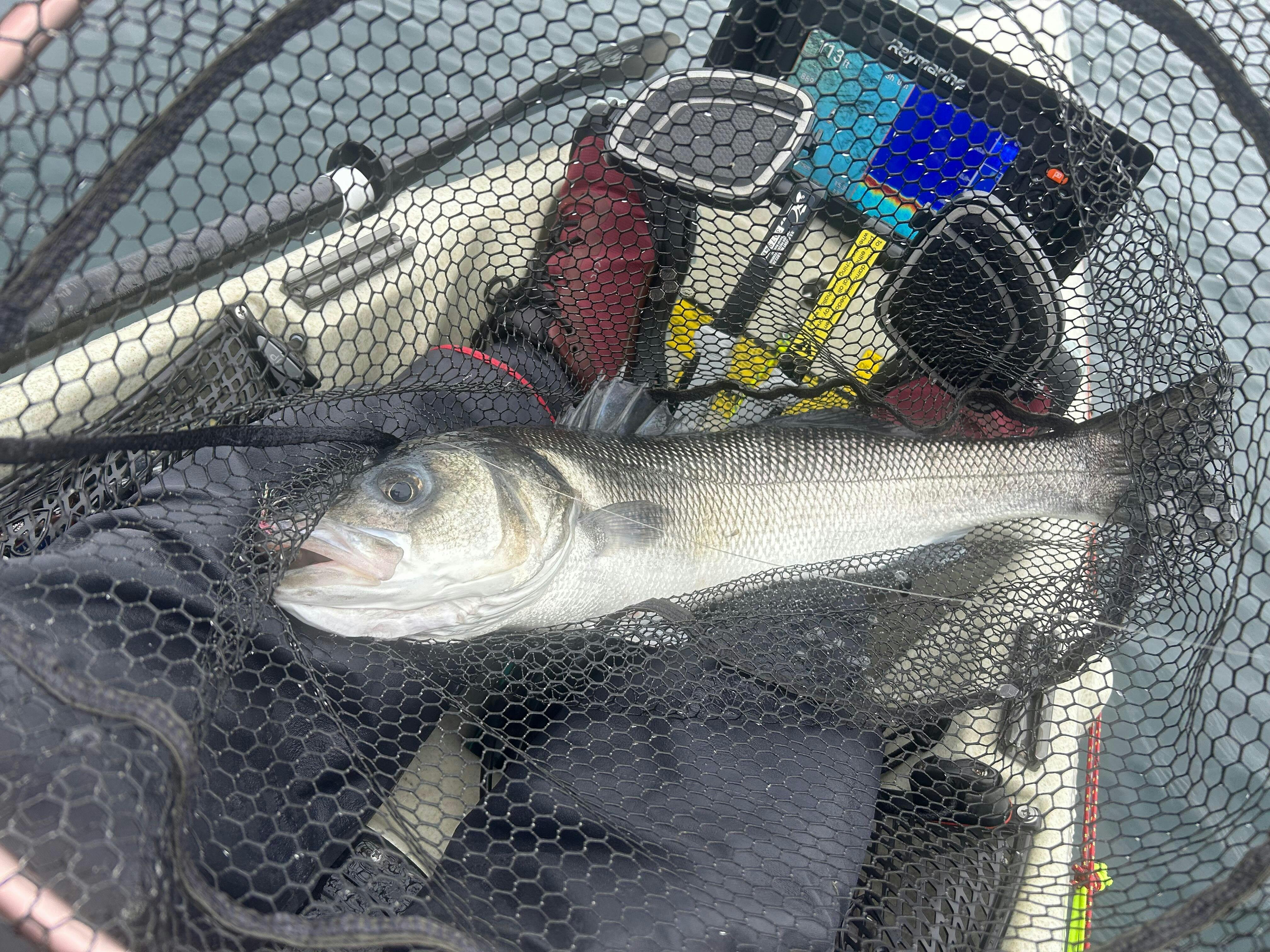 Find a shoal of Bass and the Full Mast will soon have your rod bending! Here is Sam with one of many Bass caught on the Full Mast jig.
